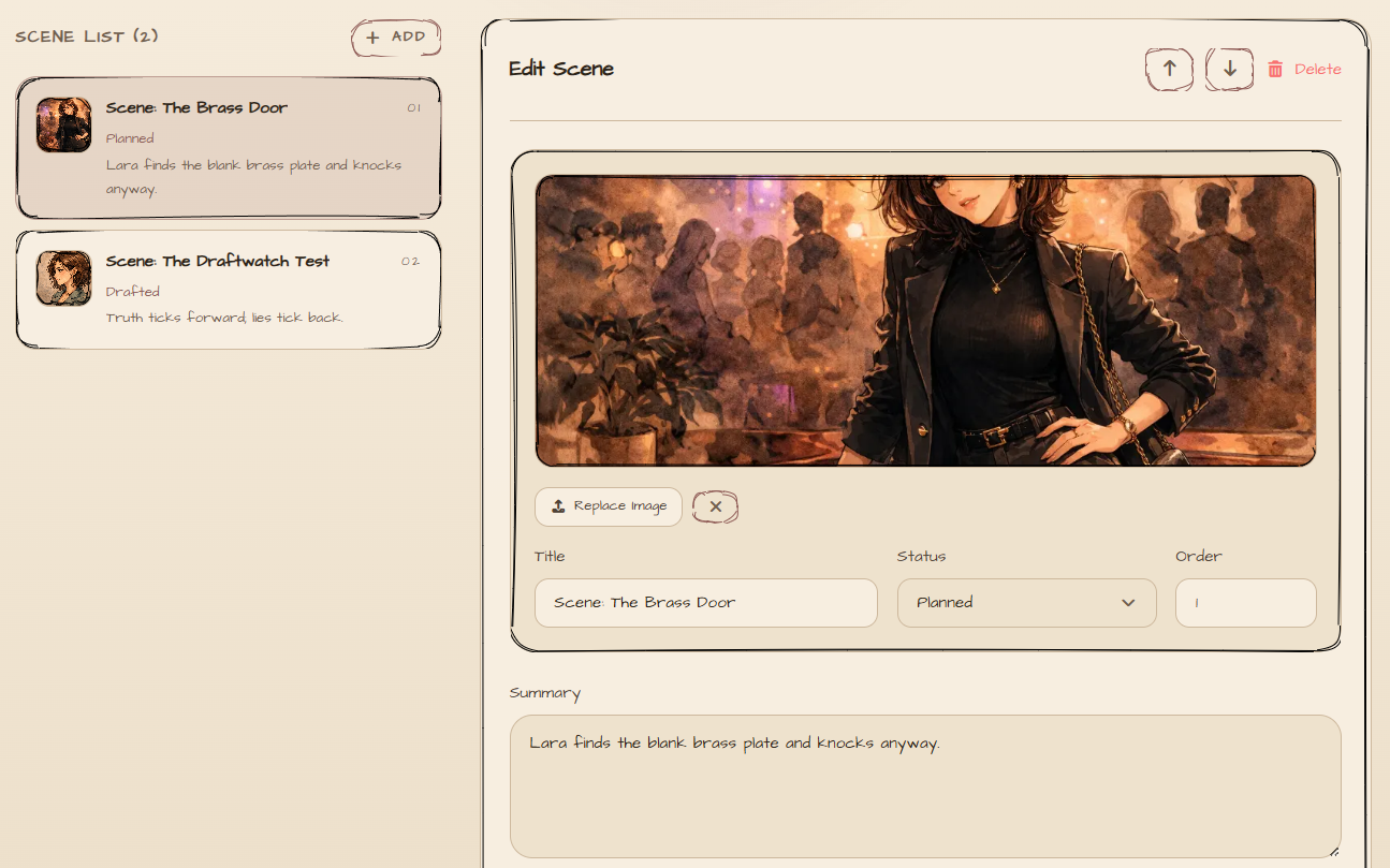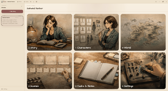 - Distraction-free writing + real structure: write pages, organize story parts, and keep your story bible right next to your draft.